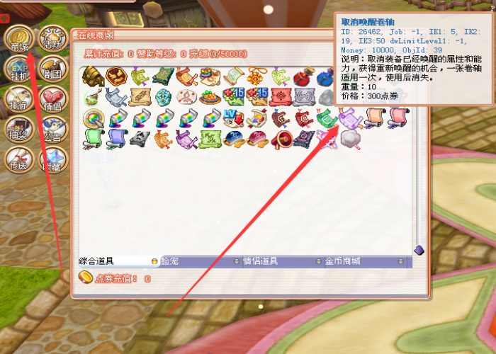 - 1.通过在线商场购买“唤醒卷轴”和“取消唤醒卷轴”进行唤醒装备和取消唤醒装备