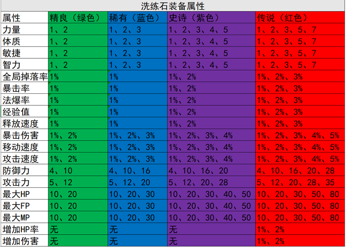 - 4.洗练石可以对熔炼属性进行随机洗。具体属性见下表。